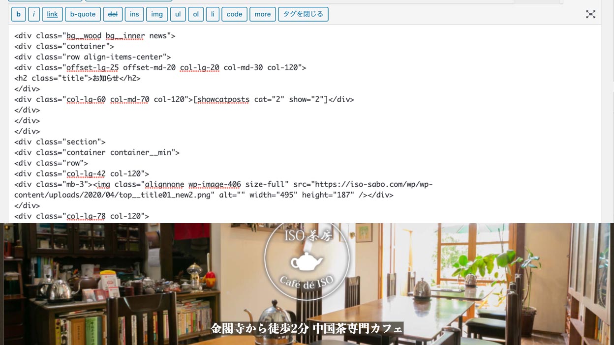 wordpress内に、コードを記入し管理画面上でも通常時と同様に見えるように設定しています。